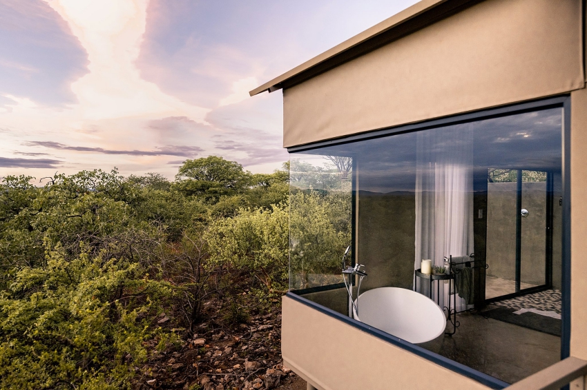 Embraced by the beautiful bushveld and exquisite Namibian sunsets, Kifaru Luxury Lodge offers an atmosphere of seclusion. The lodge stands proudly upon the beautifully weathered landscape. Rejuvenate your mind, body and soul, lit by the stars and the moon. We have our own little paradise with more than 60 species of mammals and +- 319 bird species that might be seen on the reserve.